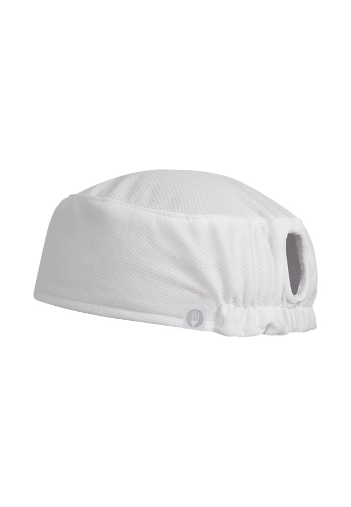 Dámská kuchařská čepice s exkluzivní vzdušnou látkou. Materiál: 100% polyester. Dostupná v bílé a černé barvě.